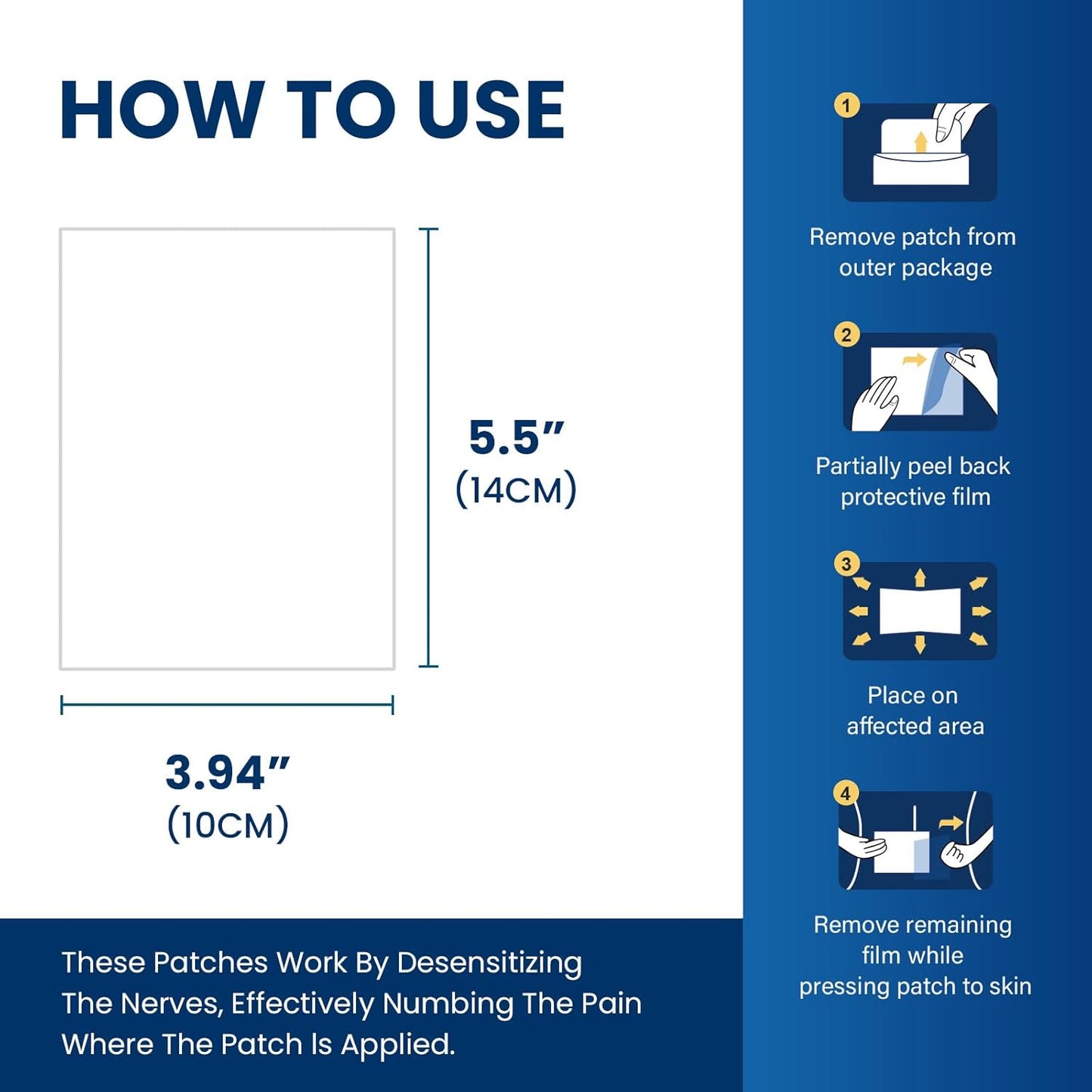 - LONG-LASTING & FAST-ACTING: Get relief when and where you need it most with our fast-acting & long-lasting lidocaine pain relief patches. Lasts 8 hours, perfect for getting through the workday or relaxing at home
