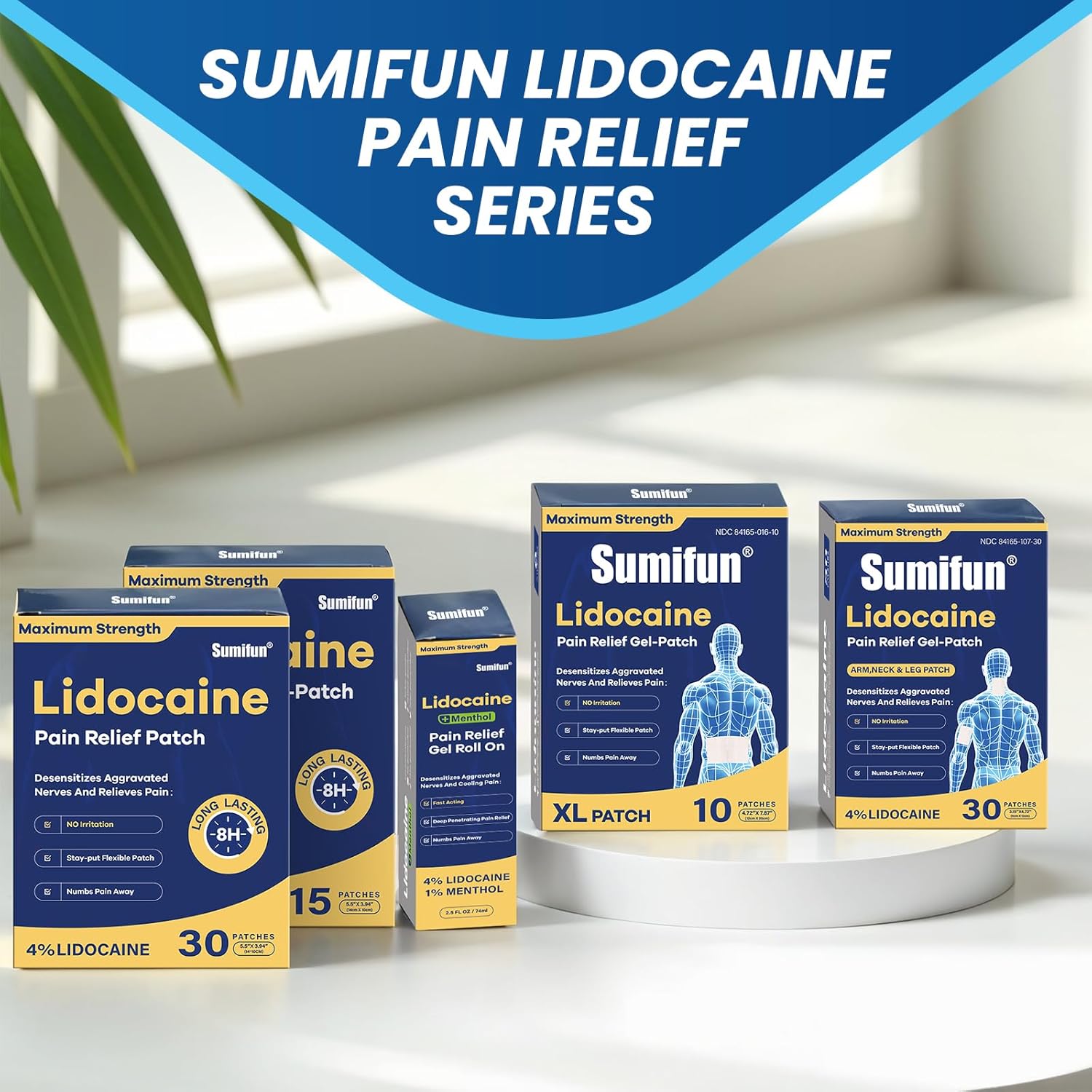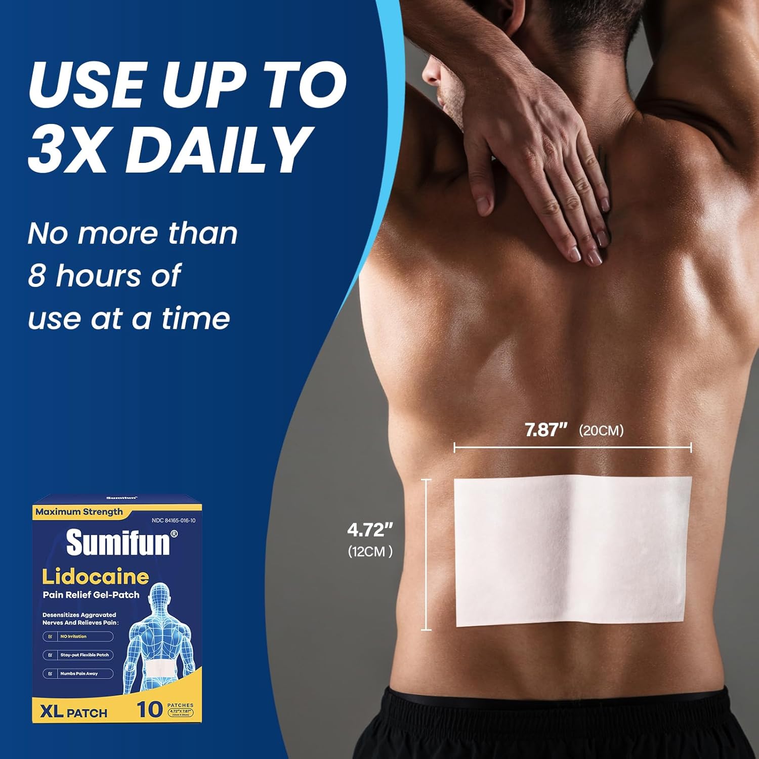 Sumifun XL 4% Lidocaine Patches, Maximum Strength OTC Numbing, Extra Large 4.72"x7.87" Pain Patches for Full Back, Leg Pain, Long-Lasting 8-Hour Pain Relief